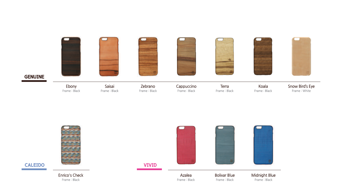 Man&Wood and iKins Man&Wood was launched in 2011. We are one of the first company which developed 'Wood Case' around the world. With master craftsmanship with woodwork and high quality of wood, we produce only the best quality of cases. We are producing the most diverse of wood cases with over 450 species of different wood. Our natural wood cases, you can feel the nature in daily life. By the collaboration work with the high-end brands such as Tory Burch, Tumi, Beams and others, MAN&WOOD is already acknowledged for having the best quality of wood cases in the world. There are many improvements in the design of this collection. A beautiful harmony of various real wood is the most noticeable change for New iPhone cases, so you can experience beauty of various natural wood which you have not experienced before. In addition to this, you can see more colorful fashionable cases and modern unique design on the natural wood. It will be the best choice for customers who want something unique and cool. iKins is for innovative materials cases such as mother of pearl. Mother of pearl adds the luxurious feeling to its own unique design.